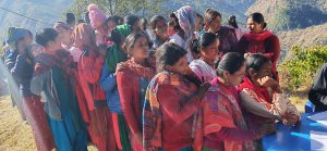 १ र २ कालीकोटको नरहरिनाथमाशनिवार सुरु भएको किशोर किशोरी तथामहिलाहरुकालागि यौन तथाप्रजनन् स्वास्थ्यशिविरमाआएकासेवाग्राहीहरु । तस्विर ः बिश्वनाथ सिम्खाडा